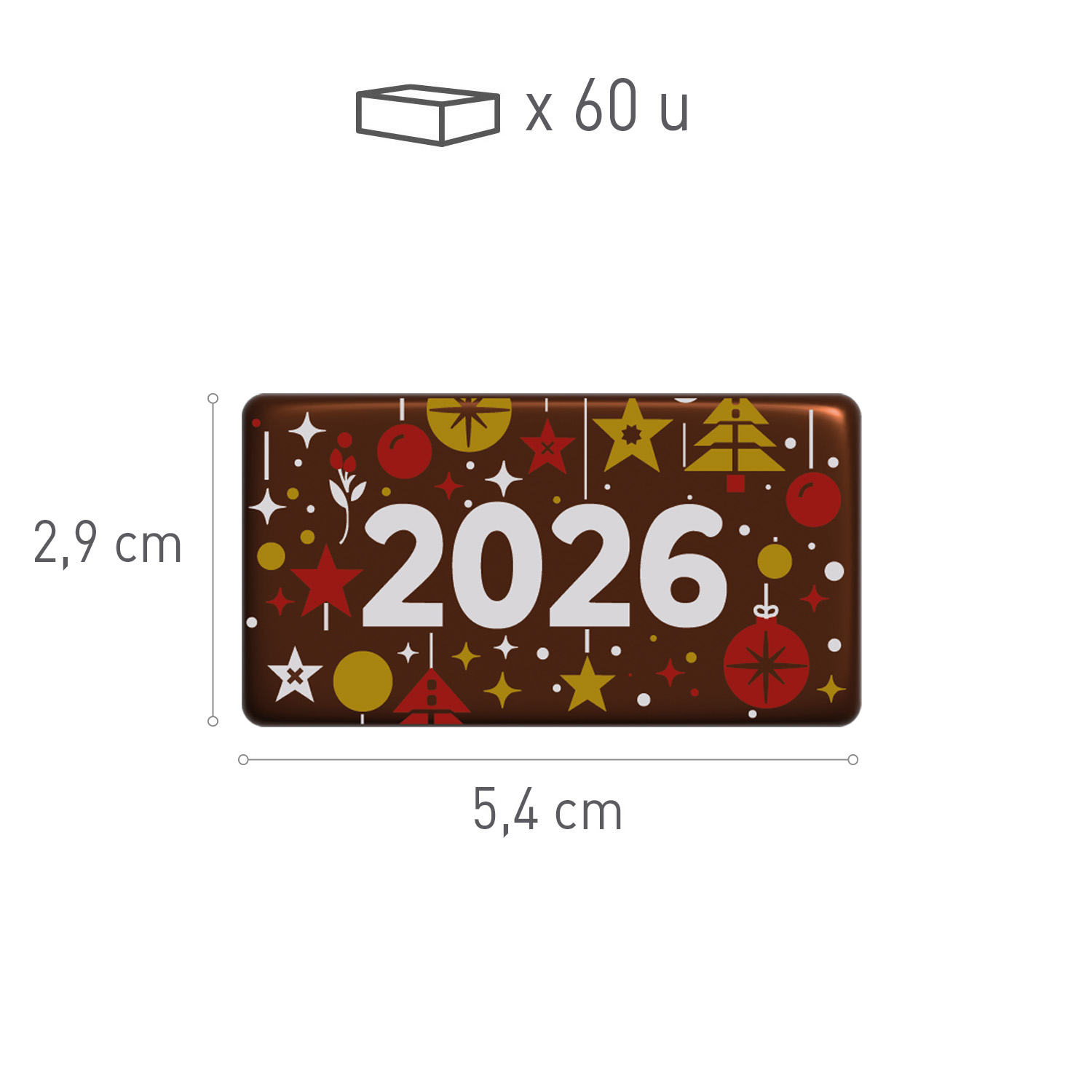 DECORACION CHOCOLATE PLACA 2026 – 60 UNIDADES