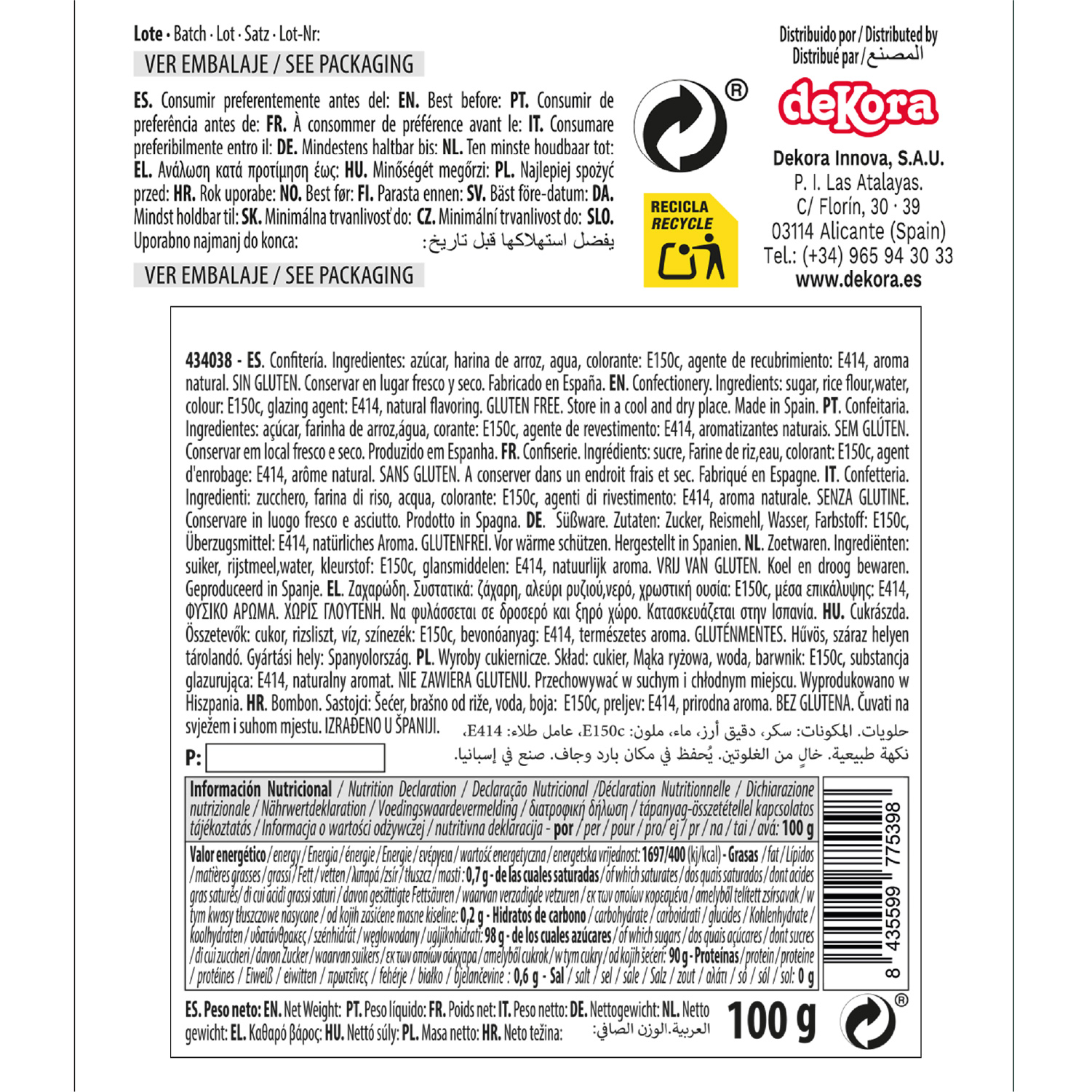 DECORACIÓN DE AZÚCAR DEKOCRUNCHIES SABOR CAFÉ 100G